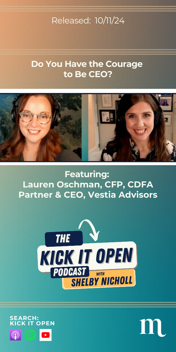 In this episode of Kick It Open, host Shelby Nicholl sits down with Lauren, now CEO of Vestia Wealth Advisors, to talk about what it really takes to step up, own your expertise, and lead with confidence. She shares her journey from advisor to CEO, how she built a niche serving physician clients, and the mindset shifts that helped her break barriers in a male-dominated industry.