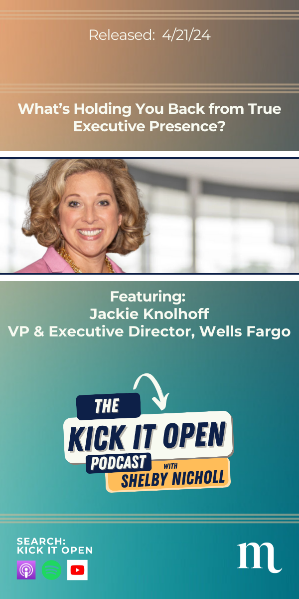In this episode of Kick It Open, host Shelby Nicholl and Jackie Knolhoff, Executive Director of Communications at Wells Fargo, break down a Forbes article by Terina Allen titled “Executive Presence: 8 Warnings Signs That You Don’t Have It.”